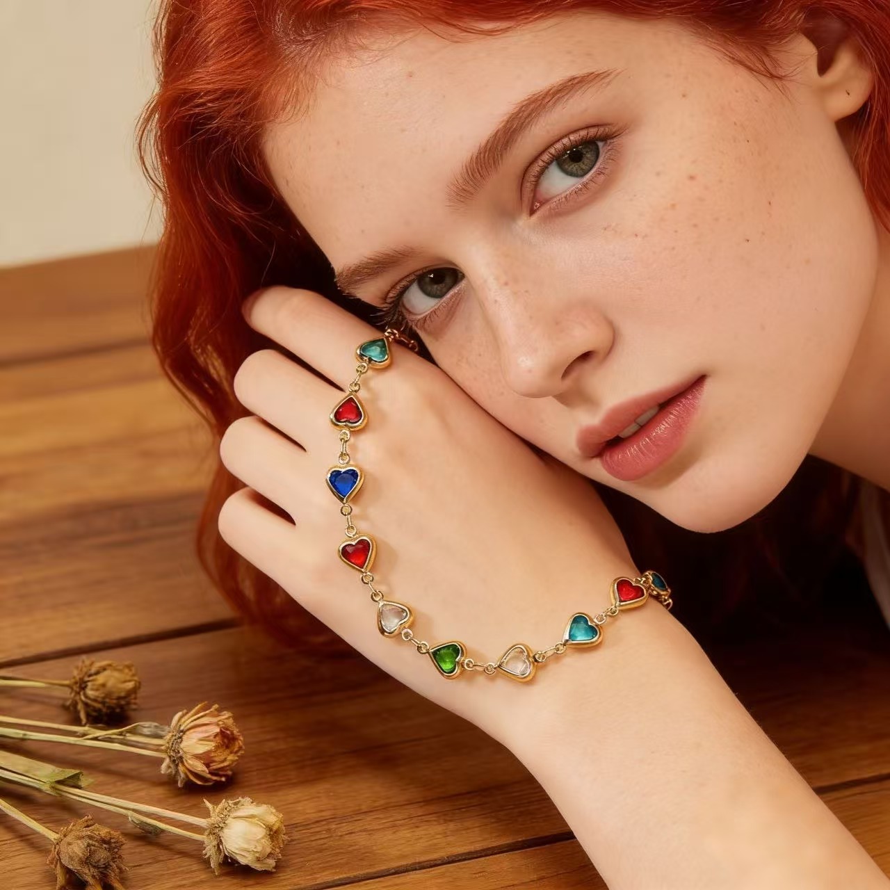 - Vibrant Heart Accents: Decorated with stunning heart-shaped stones in a variety of bright colors that catch the light beautifully.